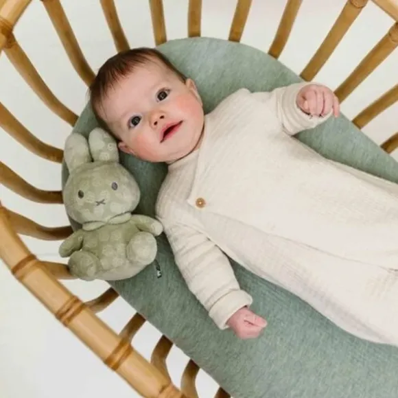 De Nijntje Knuffel – 20 cm – Green Flower is een zachte en veilige knuffel voor de allerkleinsten. Deze schattige Nijntje is uitgevoerd in een rustgevende groene tint met een subtiel bloemenreliëf en is gemaakt van gerecycled materiaal. Perfect om mee te knuffelen, slapen of als decoratie in de babykamer.