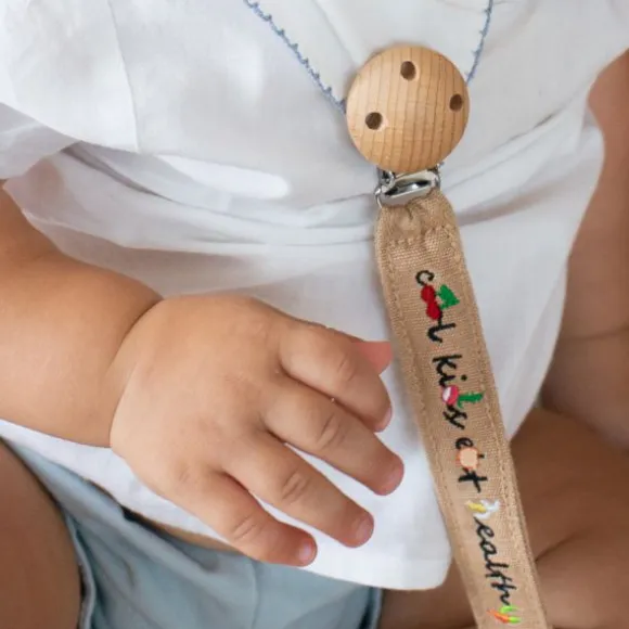 Neem je favoriete Oli & Carol bijtspeeltje overal mee naartoe met het stijlvolle Oli & Carol Speenkoord – Cool Kids Eat Healthy. Dit handige speenkoord is gemaakt van 100% natuurlijk katoen en OEKO-TEX gecertificeerd, waardoor het veilig en milieuvriendelijk is voor dagelijks gebruik. Perfect voor bewuste gezinnen die houden van design én duurzaamheid. Dankzij de houten clip bevestig je het speenkoord eenvoudig aan kleding of een kinderwagen. Het vrolijke geborduurde opschrift “Cool Kids Eat Healthy” maakt het een leuke en originele accessoire. Een onmisbaar item voor onderweg, waarmee je voorkomt dat speeltjes en speentjes kwijtraken!