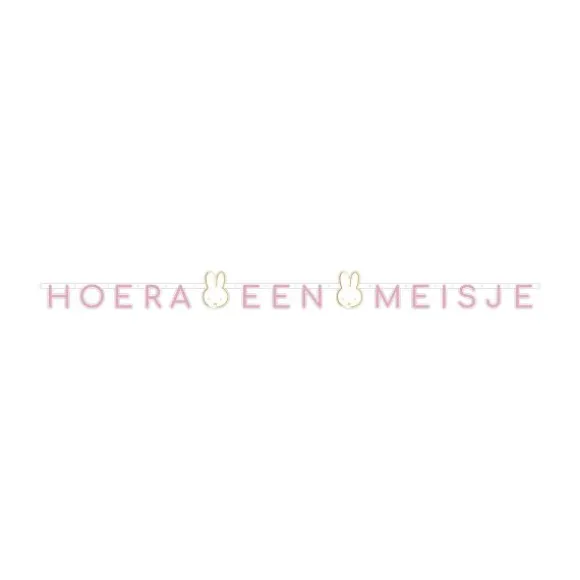 De Ootje Kadootje Nijntje Letterslinger Meisje is voorzien van de tekst “hoera een meisje“. Deze letterslinger is heel geschikt voor de versiering van het huis bij de geboorte van een kind of een kraamfeest of babyshower. Met deze letterslinger maak je de decoratie compleet.