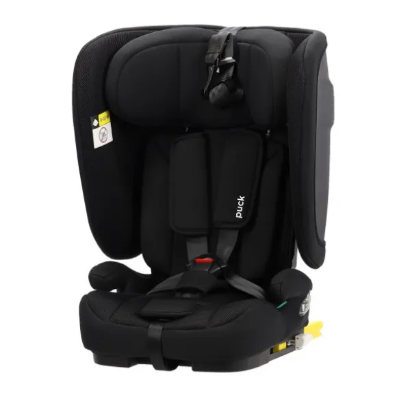 Dankzij het gebruiksvriendelijke ontwerp installeer je de Puck JIM snel en veilig met de ISOFIX-haken en de Top Tether. De visuele indicatoren helpen je bij het correct bevestigen van de stoel. De stevige constructie zorgt ervoor dat de stoel stabiel in de auto staat en niet verschuift tijdens het rijden. Zo kun je met een gerust hart op pad.