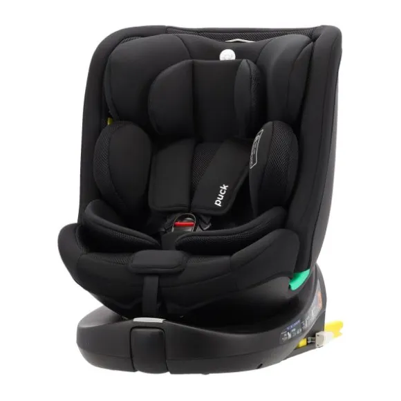 De Puck JUNE is voorzien van een betrouwbare Isofix-installatie en een verstelbare steunpoot, beide uitgerust met visuele indicatoren voor een correcte bevestiging. Deze zorgen voor een stevige en stabiele plaatsing in vrijwel elke auto. Dankzij de 360° draaifunctie draai je de stoel eenvoudig richting de deuropening, waardoor het in- en uitstappen van je kindje soepel en ergonomisch verloopt.