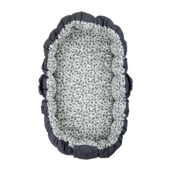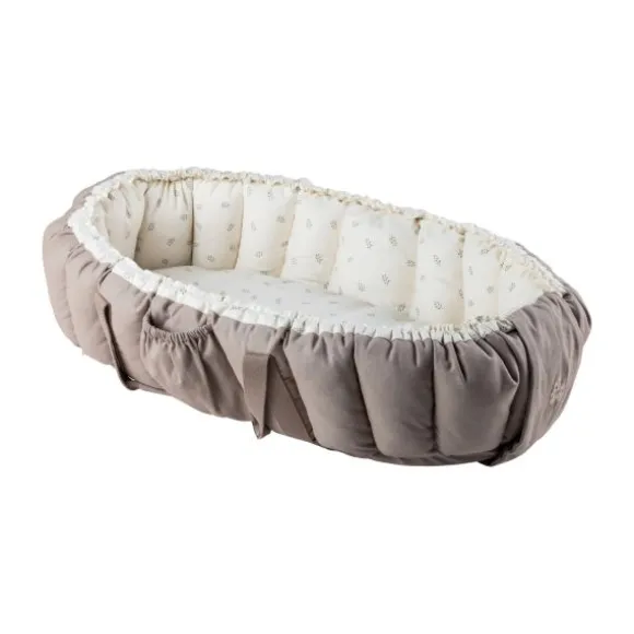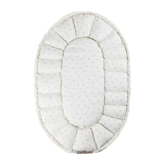 De matras en randen zijn gevuld met kapok: een natuurlijk, ademend materiaal dat hypoallergeen, antibacterieel en temperatuurregulerend is. De matras is iets lager in het midden zodat je kindje veilig in het midden blijft liggen. Aan de zijkant vind je handige vakjes voor kleine essentials zoals een speentje.