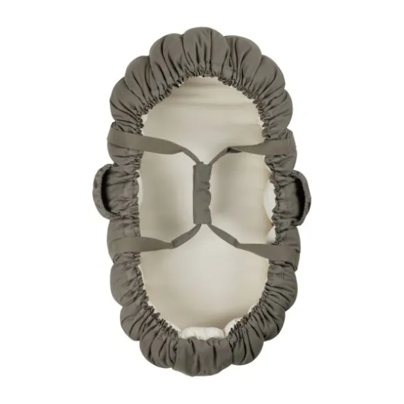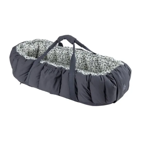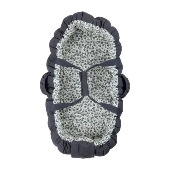 Het nest past in de meeste kinderwagens en kan de reiswieg vervangen. De buitenkant is uitgevoerd in Thunder blue, de binnenzijde heeft een zachte Blue Olive-print. De hoes en matras zijn afzonderlijk wasbaar op 40°C. Kapok moet in de droger – volg hiervoor de wasinstructies.