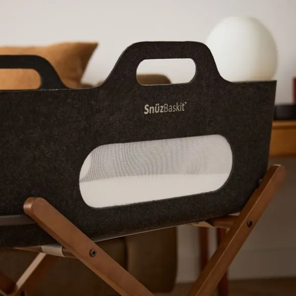 De SnüzBaskit wordt geleverd met een stijlvol bijpassend onderstel, gemaakt van hoogwaardig massief hout. Dit stabiele onderstel zorgt voor een veilige slaapplek en maakt het eenvoudig om de wieg overal in huis te plaatsen. Bovendien kun je kiezen uit verschillende kleuren en bekleding om de set perfect te laten aansluiten bij jouw interieur.