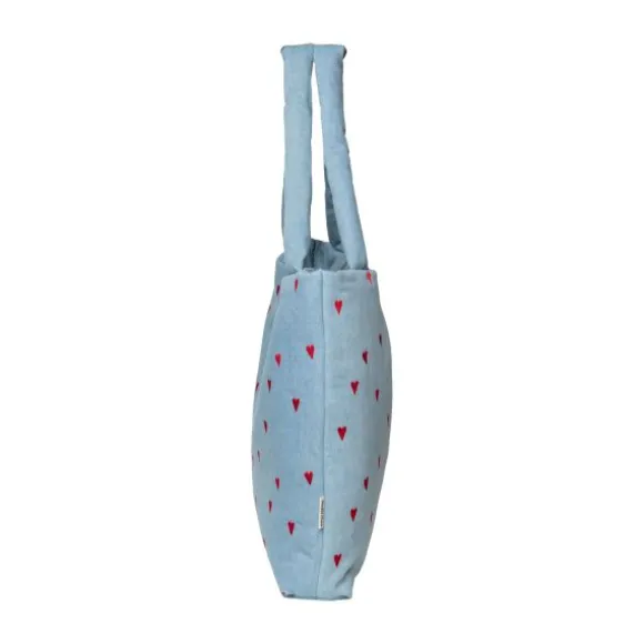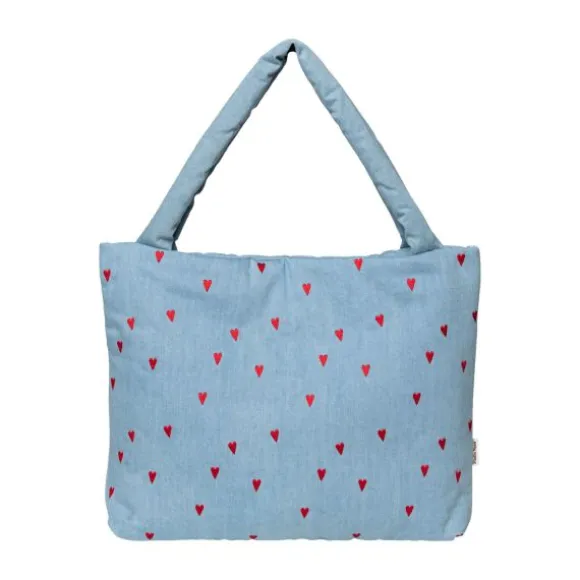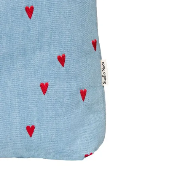 De Studio Noos Denim Hearts Mom Bag is dé nieuwe must-have uit de Denim-collectie. Deze ruime tas (58 x 42 cm) heeft een tijdloos denim ontwerp met speelse geborduurde hartjes. Dankzij de lange hengsels draag je de tas eenvoudig over je schouder of aan de kinderwagen.