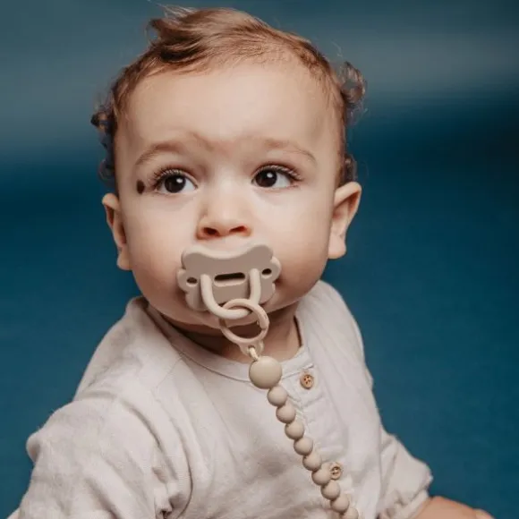 De speen is vervaardigd uit 100% medische silicone, wat zorgt voor een ultrazachte, flexibele en comfortabele sensatie in het mondje van je kindje. Het naadloze éénstuk‑design zonder naden of losse onderdelen maakt de speen extra hygiënisch en gemakkelijk schoon te maken. Dankzij het lichte gewicht blijft de speen prettig zitten zonder zwaar te voelen, zelfs bij actief gebruik.