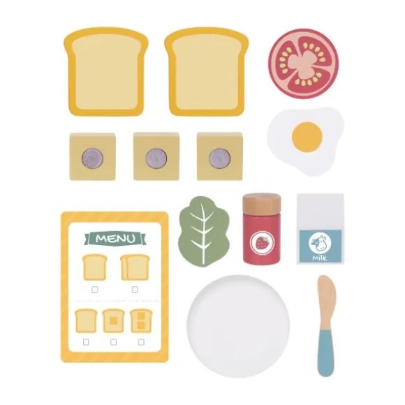 Begin de dag met een heerlijk fantasieontbijt dankzij de Tooky Toy Broodrooster – Hout. Deze sfeervolle houten broodrooster is een prachtige toevoeging aan elke speelkeuken en nodigt uit tot creatief rollenspel. Draai aan de knop, duw de hendel omlaag en laat de toast ‘poppen’ wanneer hij klaar is – net als in het echt! De set bevat twee sneetjes houten toast, boter, een houten mes en diverse smakelijke toppings zoals ei, tomaat en sla. Zo kan je kindje steeds opnieuw nieuwe combinaties maken. Ook een potje jam en een schattig houten melkpakje zijn inbegrepen, zodat het ontbijt helemaal compleet is. Perfect voor kleine chef-koks met grote fantasie!