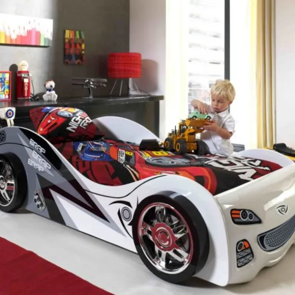 Het Vipack Brap Brap Autobed 90 x 200 cm is een bed in een vorm van een sportwagen! Bestemd voor de jongen die van racen houdt! Je rijdt met een hele snelle vaart zo naar dromenland toe! Tegelijkertijd biedt dit bed ook optimaal speelplezier! Vervaardigd van MDF gelakt materiaal.