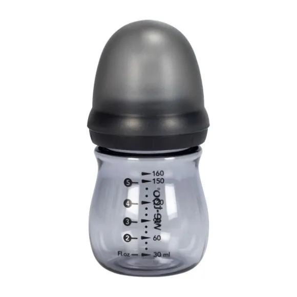 De We-Too Standaardfles – 160 ml – Black is de perfecte fles om je kindje dagelijks mee te voeden. De fles is ergonomisch ontworpen wat het makkelijker maakt om de fles te geven en om moeiteloos schoon te kunnen maken. De fles is vrij van bisfenol A en Ftalaten. Daarnaast is de fles hitte bestendig tot 180 graden. Verder is de fles verkrijgbaar in verschillende kleuren en groottes. De fles wordt standaard geleverd met een stage 1 speen, geschikt voor 0+ maanden.