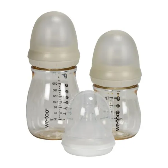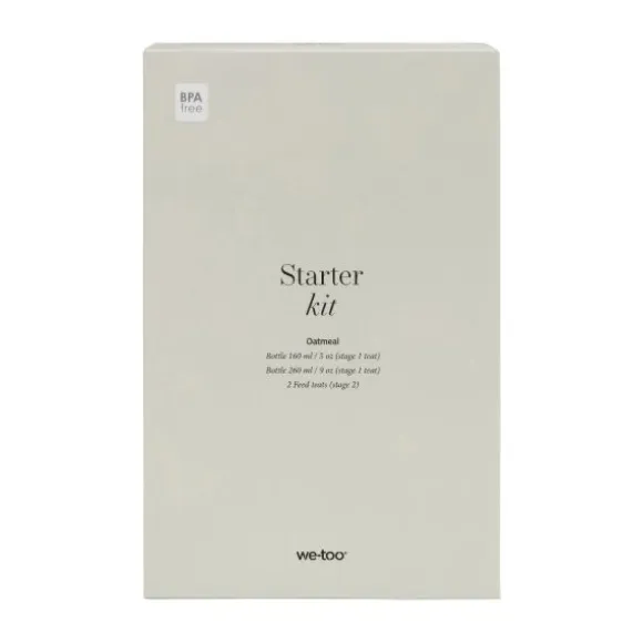Met de We-Too Starter Kit – PPSU – Oatmeal ben je van alle gemakken voorzien bij het voeden van je kindje. De starter kit bestaat uit 160 ml fles (incl. stage 1 speen) , een 260 ml fles (incl. stage 1 speen) en 2 spenen stage 2. De fles is ergonomisch ontworpen wat het makkelijker maakt om de fles te geven en om moeiteloos schoon te kunnen maken. Verder is de fles is vrij van bisfenol A en ftalaten. Daarnaast is de fles hitte bestendig tot 180 graden.