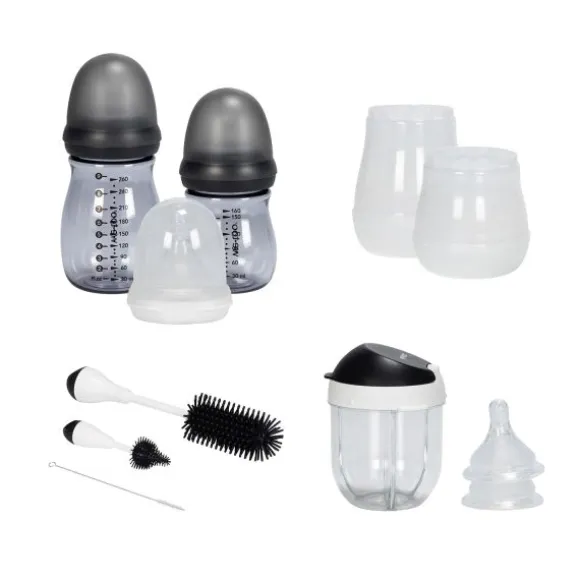 Met de We-Too Starterset – Oatmeal ben je van alle gemakken voorzien bij het voeden van je kindje. De starterset bestaat uit 160 ml fles (incl. stage 1 speen) , een 260 ml fles (incl. stage 1 speen), één stage 0 speen, 2 stage 2 spenen, een schoonmaakset, een poederbus, een fles isolator van 160 ml en een fles isolator van 260 ml. De fles is ergonomisch ontworpen wat het makkelijker maakt om de fles te geven en om moeiteloos schoon te kunnen maken. Verder is de fles is vrij van bisfenol A en ftalaten. Daarnaast is de fles hitte bestendig tot 180 graden.