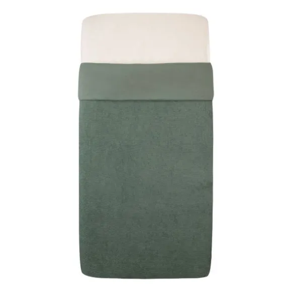 Met de Witlof For Kids Velvet Rib Tuck-Inn Wiegdeken – Soft Sand kan je kindje heerlijk rustig in het bedje slapen. De wiegdeken is gemaakt van hoogwaardig materiaal en voelt heerlijk zacht en comfortabel aan. Bij het voeteneind beschikt de deken over een handig elastiek, waardoor het bedje van je kindje eenvoudig en strak opgemaakt kan worden. Bovendien zorgt dit Tuck-Inn systeem ervoor dat je kindje de deken niet los kan trappelen. Verder kan het dekentje perfect worden gecombineerd met het andere beddengoed van Witlof For Kids. Tips voor veilig gebruik van beddengoed: Zorg ervoor dat je kindje met zijn voetjes dicht bij het voeteneind ligt. Maak het bedje kort en strak op en zorg ervoor dat het beddengoed niet hoger dan de schoudertjes van je kindje reikt.