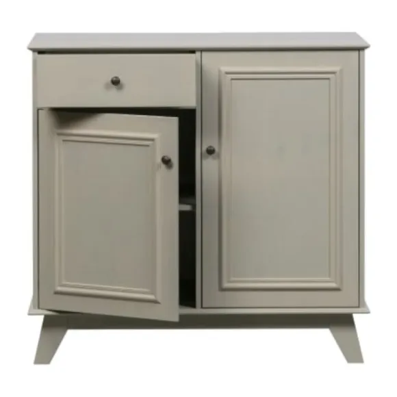 De Woood Lily Opbergkast Grenen Clay is gemaakt van grenen dat is afgewerkt in een warm grijze kleur. De opbergkast is voorzien van een lade met een zwart metalen knop en twee deuren voorzien van een zwart metalen knop. De kast heeft voldoende opbergruimte. Leuk te combineren met andere producten van de Woood Lily collectie.